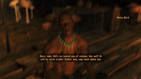 Companions Mixed Experience: While they were intriguing, I feel there was not a meaningful enough time spent with the companions of Dead Money. In Honest Hearts, I spent some time with the 3 simpler companions that were assigned to me in sequence; in a way, it felt better because I don’t feel I’m missing any hidden depth. Ultimately, I feel it’s hard to have truly meaningful DLC-only companions they last 5–8h. I get a long playtime to deal with the single companion restriction & obscure companion quest triggers in the main game. The lack of a Legion-aligned companion (though Ulysses was rumoured to be that at some point) is also probably a consequence of the 18-month development timeline (the fact they got so much in 18mo is incredible!)