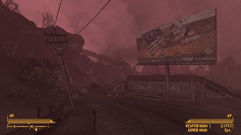Be Good or Do Good: I completed this playthrough siding with the NCR but they’re not exactly paragons of morals—bureaucratic inefficiencies, corruption and massacre of the Great Khans. The inclusion of faction reputation allows a more nuanced take on player’s action and consequences beyond being good or evil, waddling in a grey muck of trade offs. A nice consequence is an epilogue that showcased the gamut of outcomes with the various parties involved.