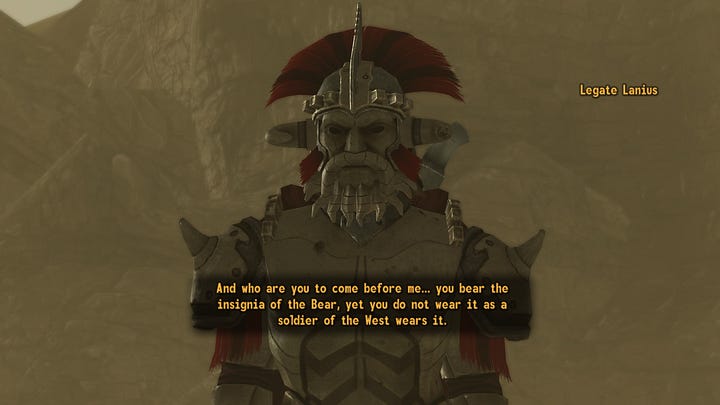 It also makes the question it asks, via Hanlon, a real pertinent brain-twister: Can you wish for your own country's defeat, patriotically? -A single character shows why Fallout: New Vegas is a classic