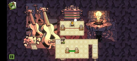 Aesthetics: The lo-fi colourful pixel art style is very distinct—not just blocking but actually done at a high resolution that if resized (like below), one might not realize it’s pixel art. There was also a beautiful musical piece at the end of the last chapter I played.