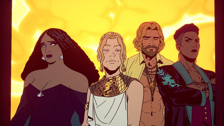 Premise & Aesthetic: The Greek gods/murder mystery mashup hooked me in the first two hours. The cast of stylish deities gives off some Hades vibes.