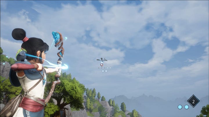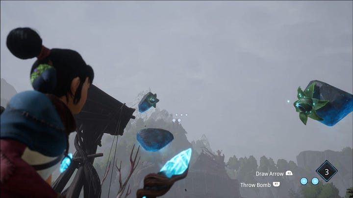 Souls-Inspired, But Missing Key QoL: While clearly drawing from FromSoftware's design, the combat lacks crucial polish. Unlike Souls games where enemy placements are deliberate, Kena throws respawning waves at you from all directions—including behind the camera—with no damage-direction indicators to help orient yourself. One particular fight had me knocked off platforms repeatedly, forcing complete restarts. Arkham-style incoming attack indicators (will probably ruin the aesthetics) or combat camera that dynamically frames all threats could have helped this.