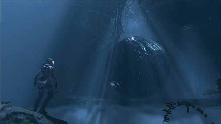 Vibes: Housemarque trades in the neon of their earlier games for a spooky atmosphere in Returnal. The first zone especially was giving me H. R. Giger, foreboding alien world. The entire presentation is brought together with excellent Dualsense controller integration. Exploring the house felt like a horror game.
