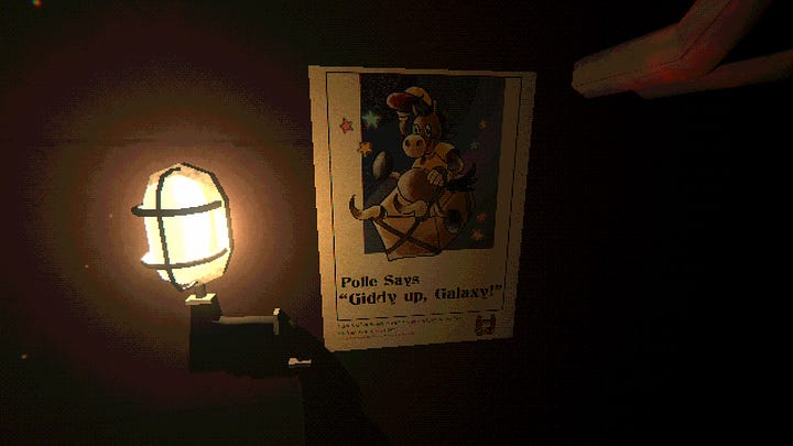 Trippy Presentation: I’ve been on a psychedelic trip but now I imagine it must be like some of what I experience in Mouthwashing. It usage of glitchy audio and visual effects fits well with the retro aesthetics. One memorable one was used to obfuscate a certain element in the environment, it left me wondering how it’s even achieved technically.